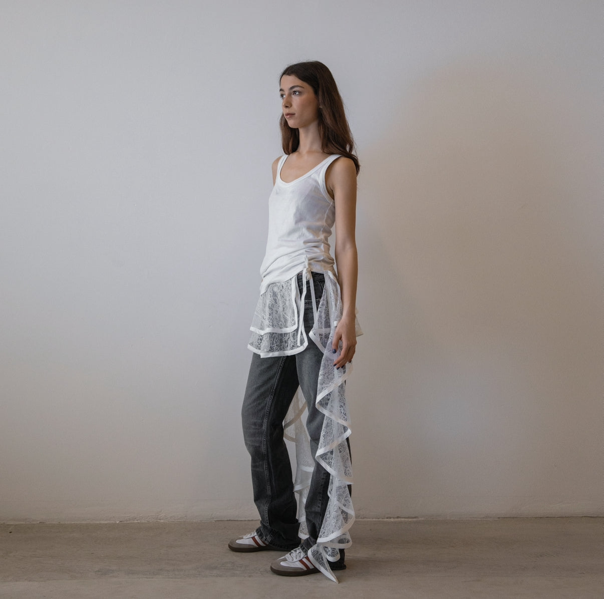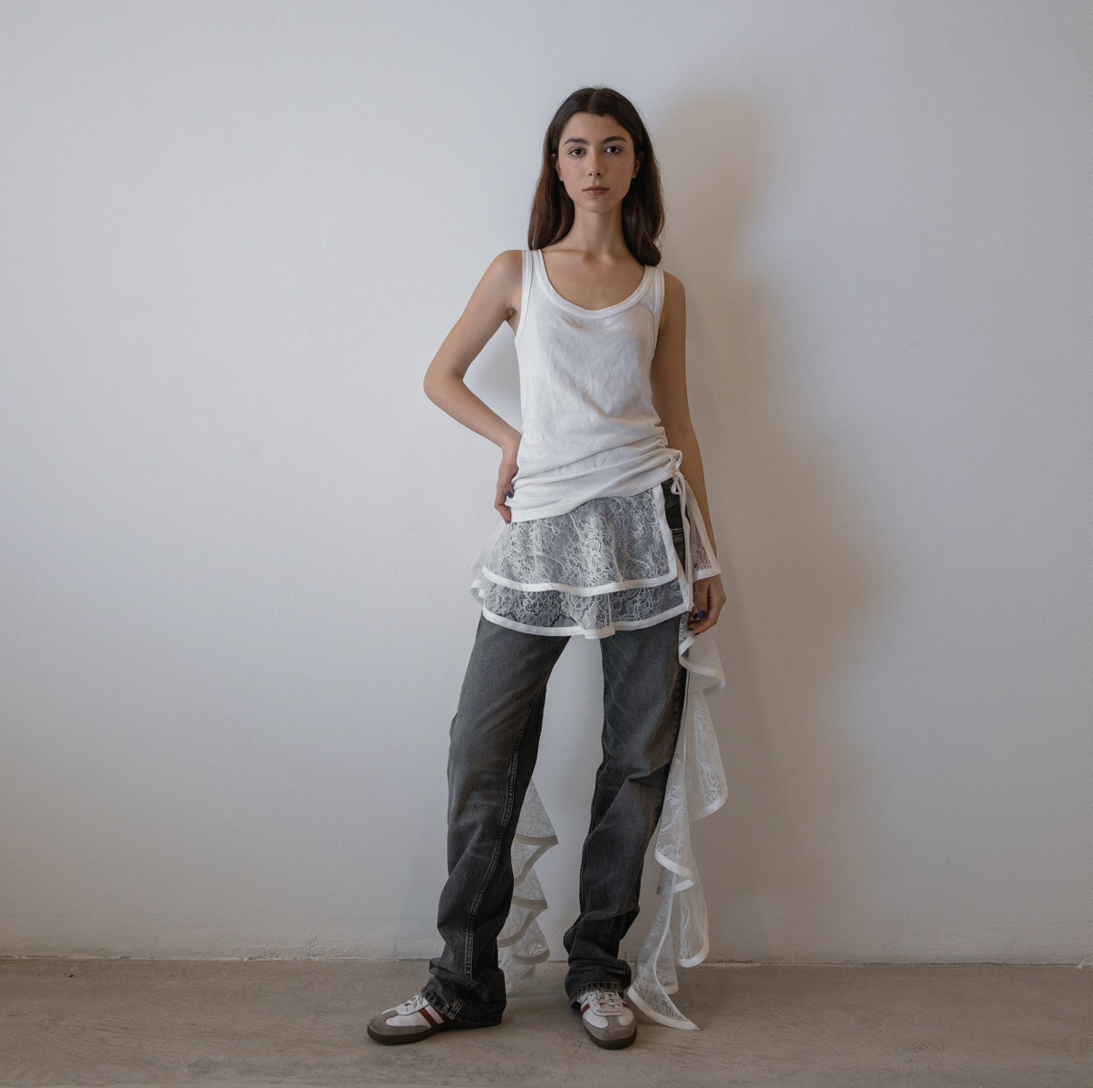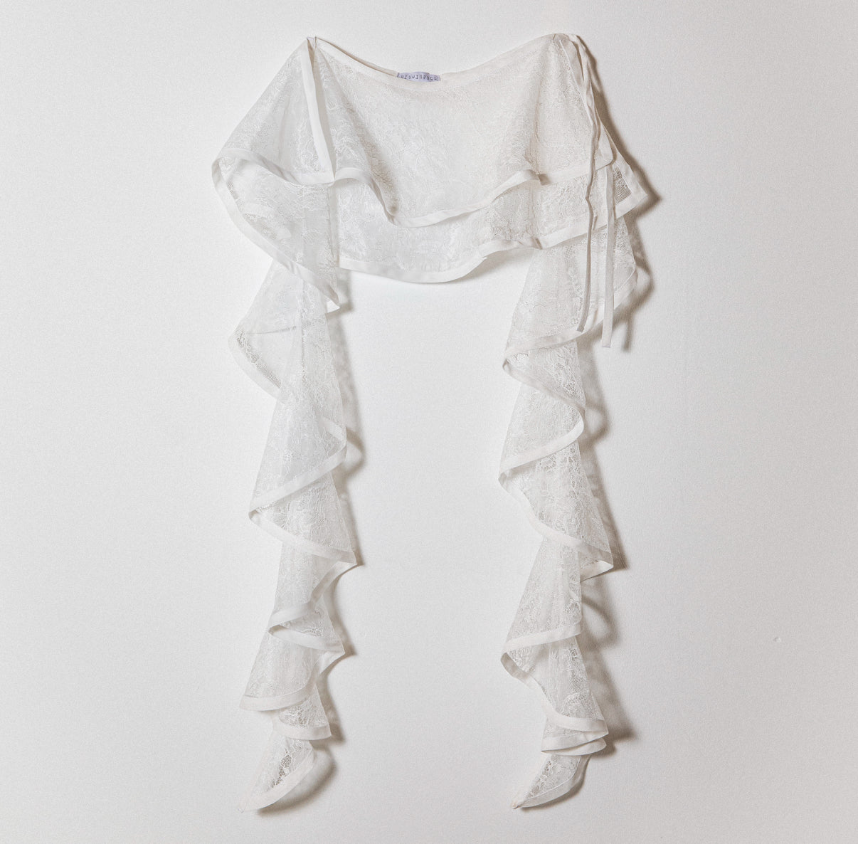 Questa cintura in pizzo leggero si lega in vita e aggiunge un tocco romantico a qualsiasi look. Perfetta da indossare sopra gonne, pantaloni o shorts, si adatta facilmente grazie ai lacci regolabili.