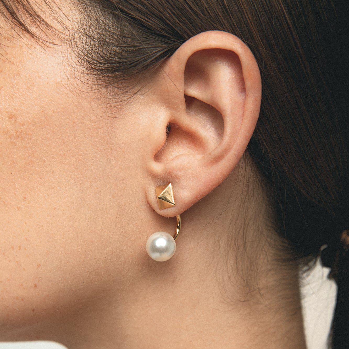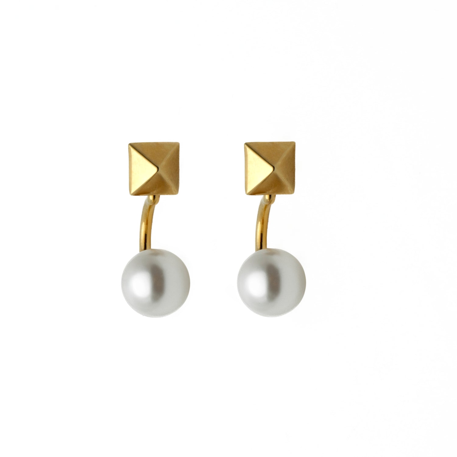Gli orecchini piercing con perle e piramidi Edie, della capsule Pearls Lover Vivyinrosa, sono realizzati in placcatura oro di altissima qualità e sono ipoallergenici.