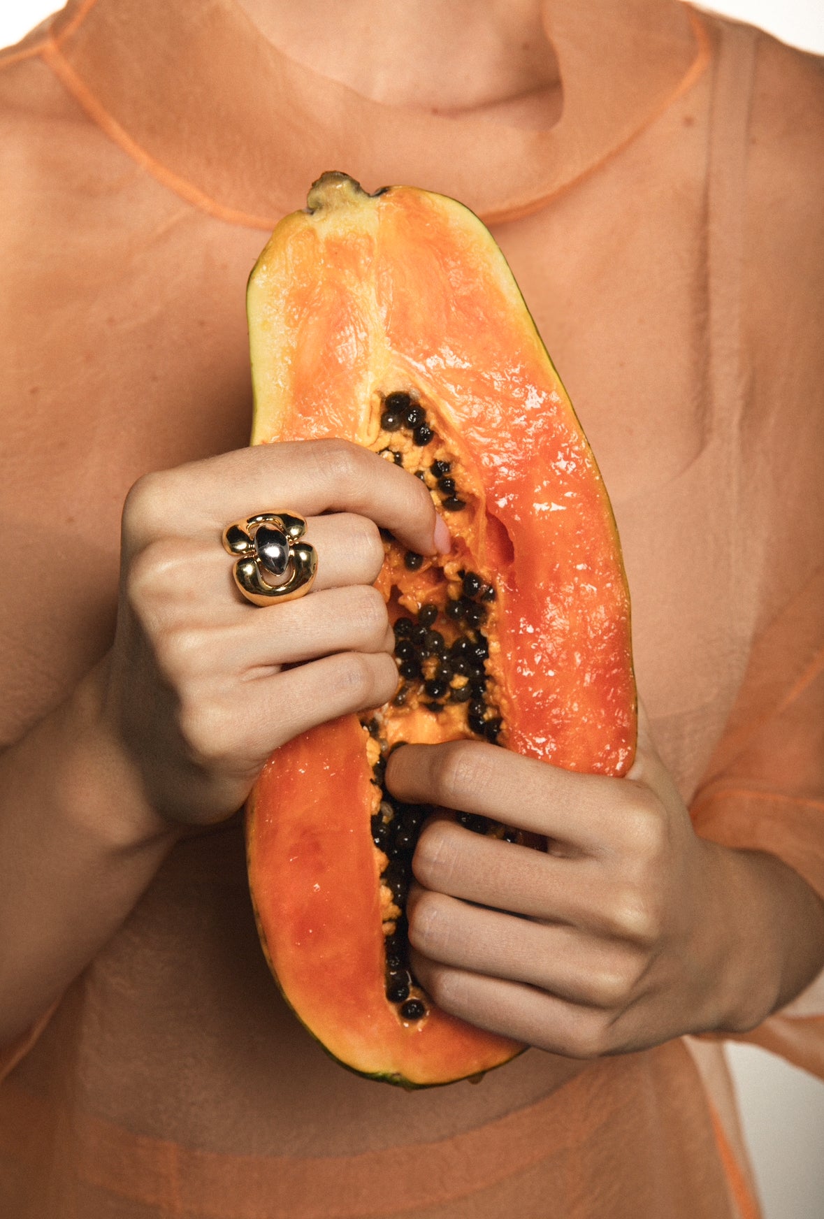 L’anello Mariacarla, della capsule The Knot di Vivyinrosa, è realizzato con materiali di altissima qualità ed è ipoallergenico.