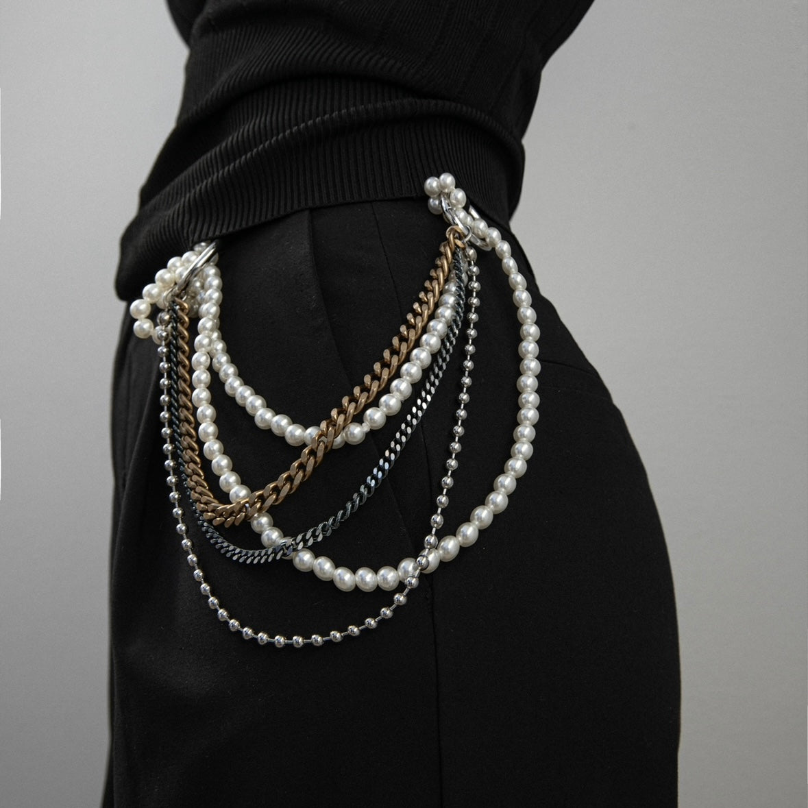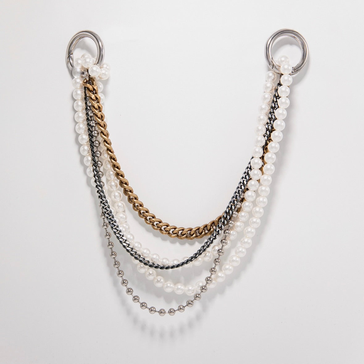 La collana catene e perle per borse e cinture Marilyn, della collezione Dots Vivyinrosa, e’ realizzata con materiali di altissima qualità ed è ipoallergenica.