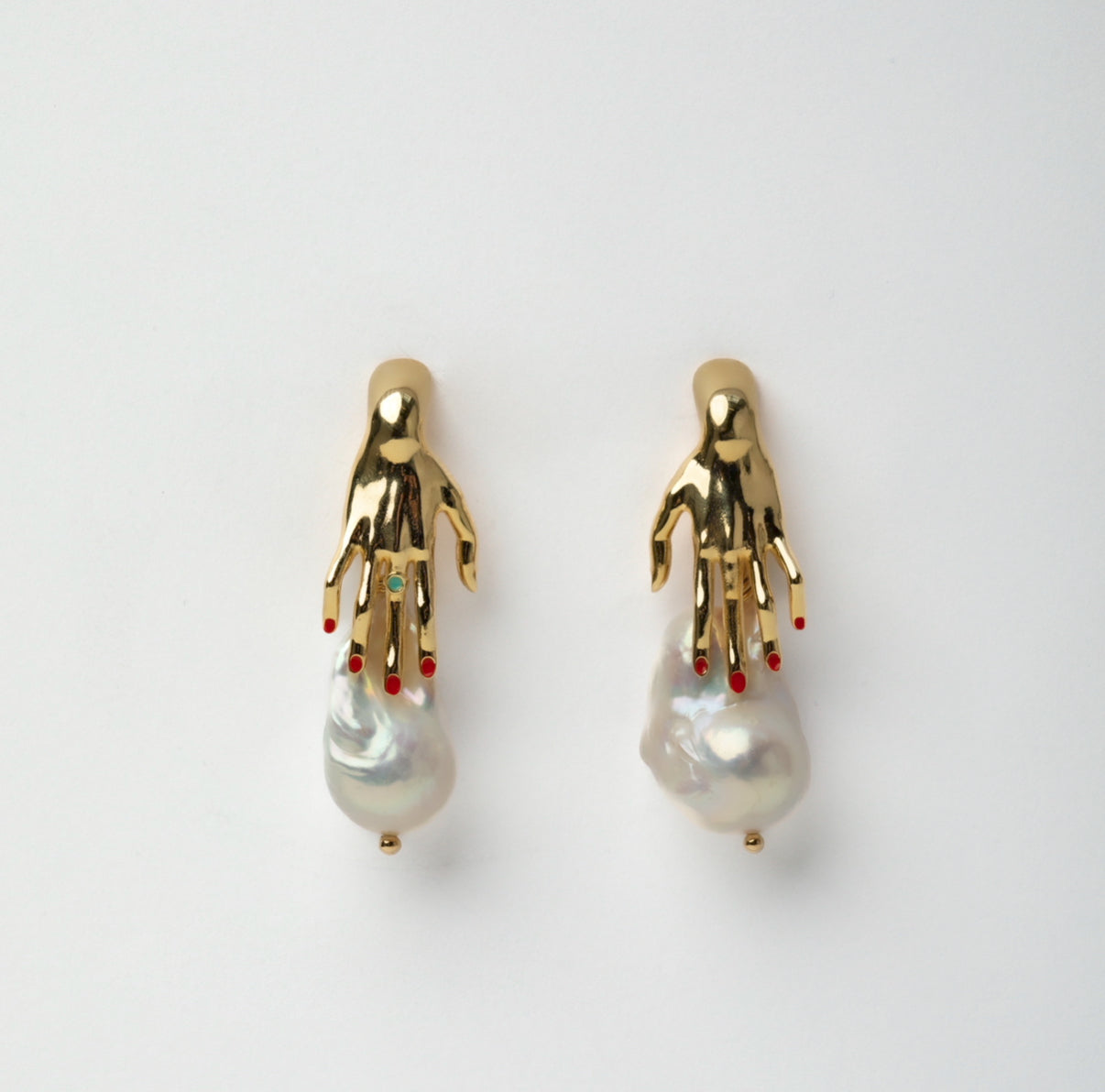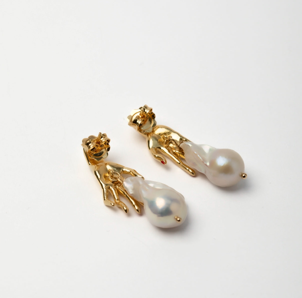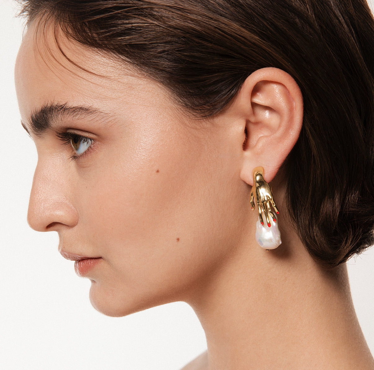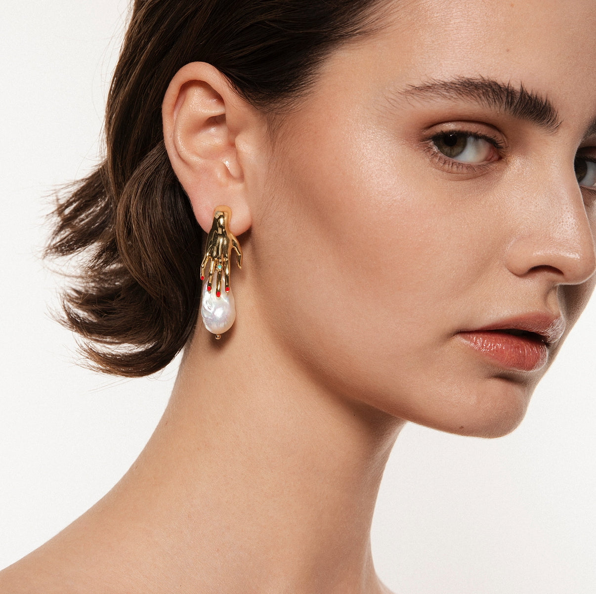 Un design scultoreo e ironico, dove la delicatezza delle perle barocche incontra la forza del metallo. Perfetti per dare un tocco audace e inaspettato a qualsiasi look.